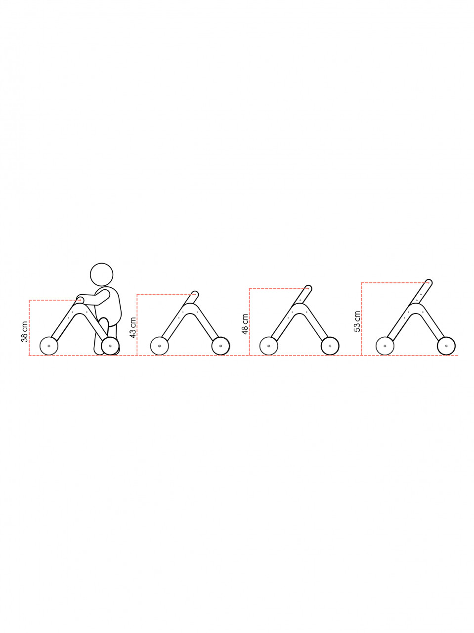 Inaltime reglabila: inaltimea poate fi reglata in functie de nevoile bebelusului, datorita manerului care se poate extinde de la 38cm la 54cm, avand 4 variante de inaltine.