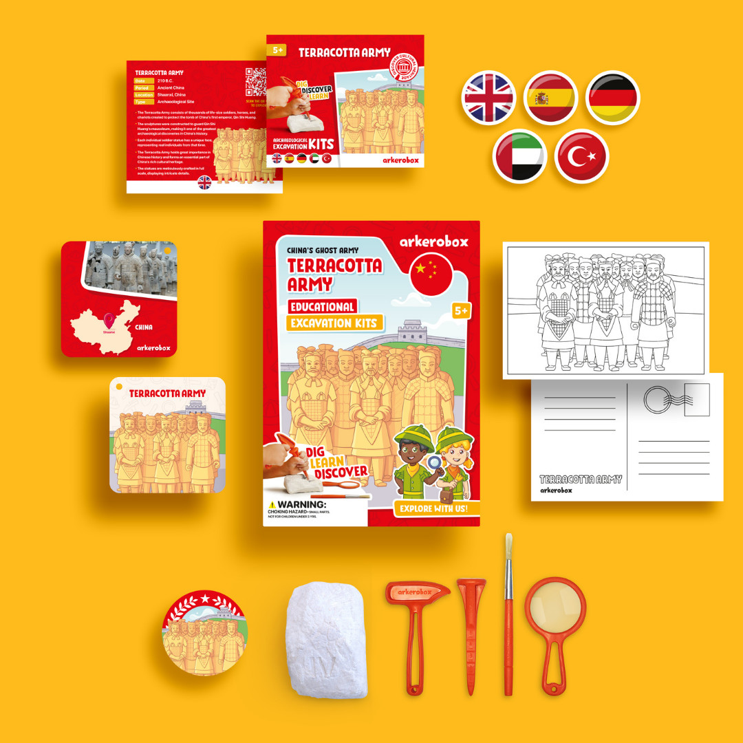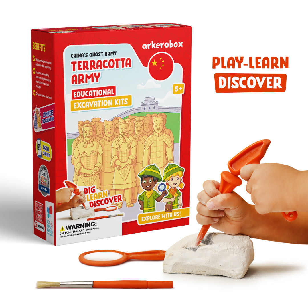 Cu ajutorul acestui kit descoperiti misterul Armatei de teracota! Armata de teracotă este formată din mii de soldați, cai și care în mărime naturală, creați pentru a proteja mormântul primului împărat al Chinei, Qin Shi Huang. Sculpturile au fost construite pentru a păzi mausoleul lui Qin Shi Huang, făcându-l una dintre cele mai mari descoperiri arheologice din istoria Chinei.