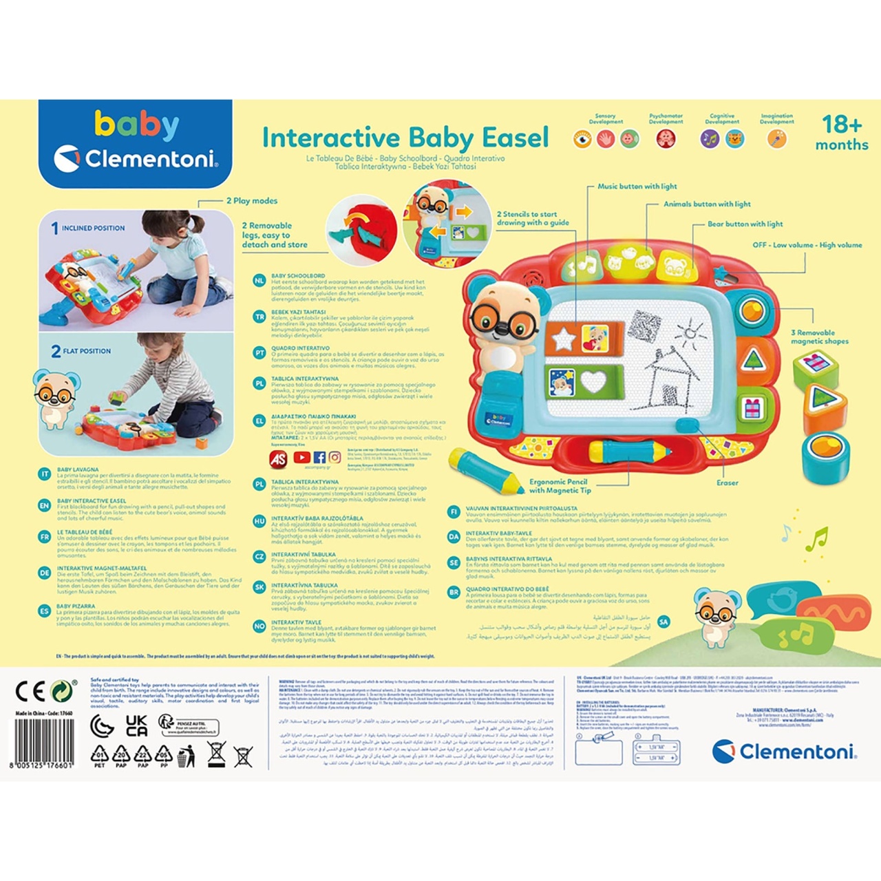 O Tablita magnetica interactiva de la Clementoni pentru a invata copiii sa faca schite cu rigle originale detasabile, dar si o suita de activitati cu efecte sonore, melodii si o multime de zgomote de animale interesante. Prima plansa de desen este conceputa pentru bebelusi. Un ajutor excelent pentru initierea copiilor in desen, folosind forme dragute si rigle de sablon care faciliteaza si ghideaza coordonarea mainilor. Melodii, sunete si efecte de lumina pentru a capta atentia celui mic, precum si multe caracteristici care ajuta la perfectionarea abilitatilor motorii. Toate activitatile, componentele si butoanele au fost studiate pentru a crea o jucarie simpla. Pe langa desenelor libere, copiii pot folosi si riglele detasabile, sabloanele si forme magnetice, care vor ajuta copilul sa invete in timp ce se joaca. Butoanele activeaza melodiile, zgomotele animalelor si continutul sonor conceput pentru a incuraja vorbitul, indrumandu-i pe bebelusi in timp ce se concentreaza pe o joaca interactiva si distractiva. Acest produs de calitate premium si complet sigur este realizat in intregime in Italia, activitatile proiectate cu meticulozitate si schema de culori aleasa cu atentie. O lume care trebuie descoperita Timpul petrecut la joaca este esential pentru dezvoltarea celui mic. Fiecare moment plin de distractie reprezinta pentru copilul tau noi invatari, descoperiri si abilitati. Jucariile baby Clementoni ii vor ajuta pe copii sa invete in timp ce se distreaza, favorizand cresterea lor prin folosirea unui limbaj natural pe care il cunosc: jocul. Zornaitoare, jucarii interactive si multe altele va asteapta sa le descoperiti! Caracteristicile produsului precum calitatea, siguranta sau manipularea usoara sunt concepute pentru a depasi asteptarile parintilor. Asadar, baby Clementoni se afla in pozitia de invidiat de a fi un brand dedicat celor mici, capabil sa satisfaca ambele parti ale nevoilor consumatorilor: emotional si functional. Principalele avantaje ale jucariilor baby Clementoni Potrivite pentru fiecare etapa de crestere a bebelusilor; Sigure pentru copii, folosind materiale de inalta calitate si non-toxice; Jucarii de calitate cu un puternic continut educational; Stimuleaza functiile locomotorii ale bebelusilor si-i ajuta sa descopere relatia dintre cauza-efect; Jucarii interactive ce vorbesc, canta si se misca, starnind curiozitatea micutilor; Desenat, testat si proiectat in Italia Jucarie sigura si certificata*Durata de livrare a produselor de 1-2 zile lucratoare poate fi oferita in perioadele cu volum scazut de comenzi si in conditii de disponibilitate a produselor. Termenul se poate prelungi pana la 30 de zile conform prevederilor legale de livrare a comenzilor plasate online.