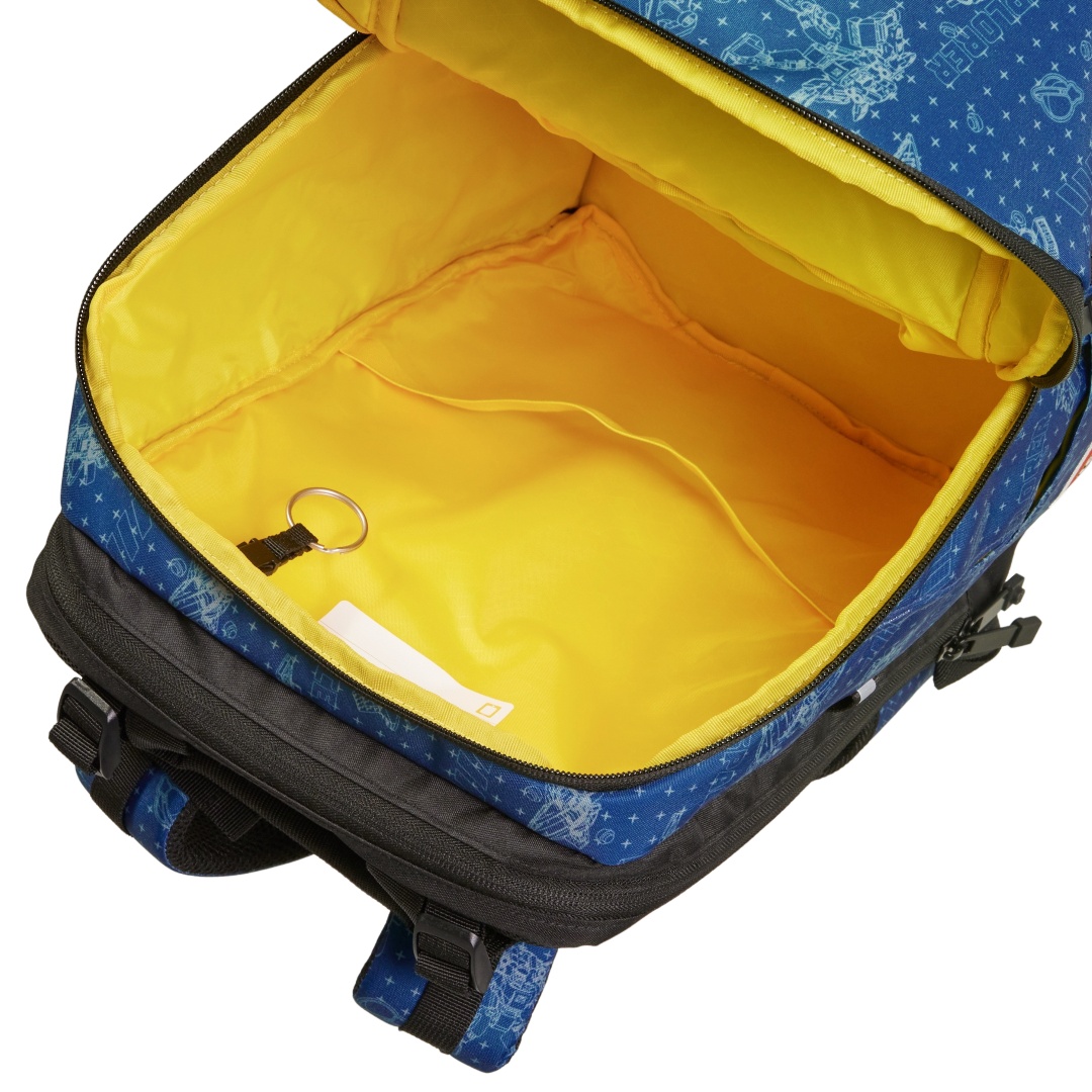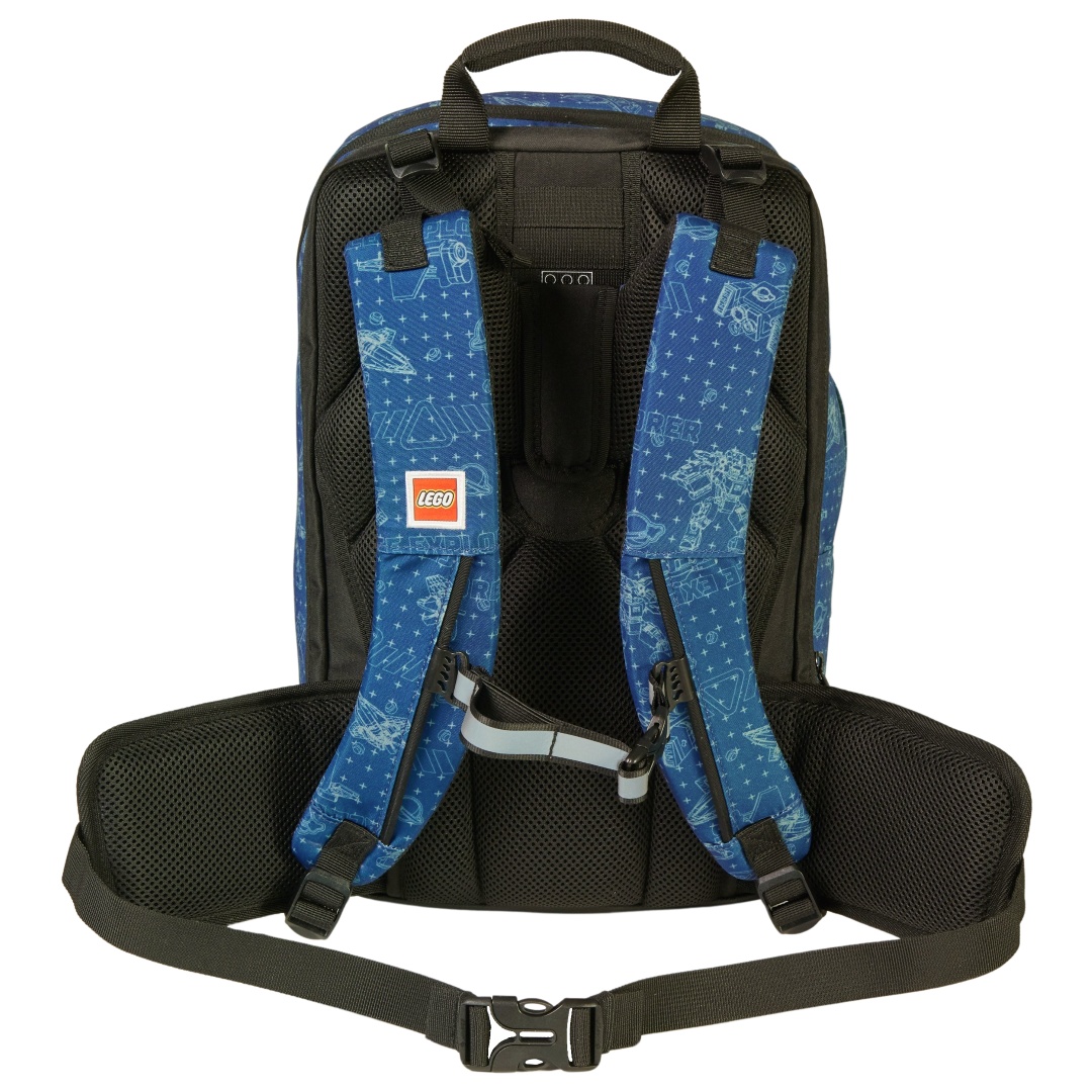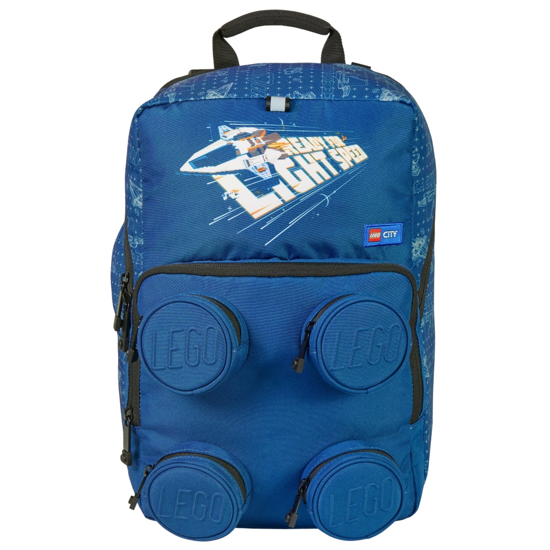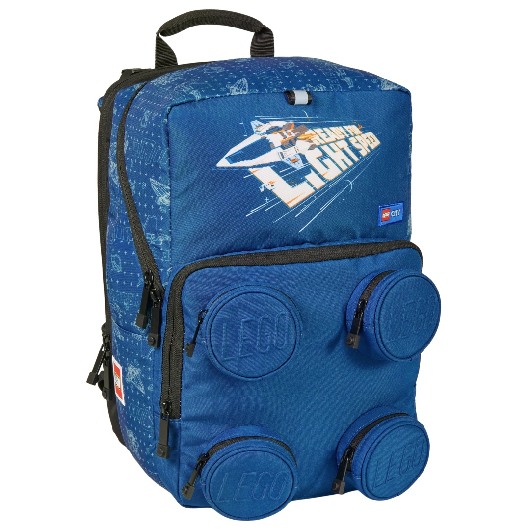 Ghiozdanul ţcolar LEGO - Petersen - este un model emblematic, uţor de recunoscut datorită buzunarului frontal ce imită o piesă LEGO 2x2 supradimensionată.