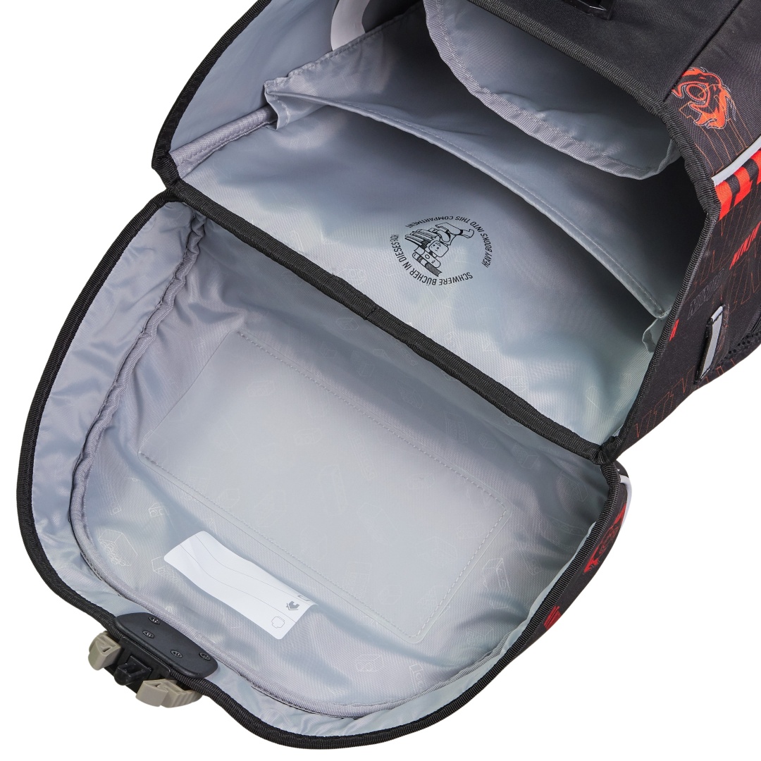 Rucsacul Easy Light este un ghiozdan spaios ţi uţor, cu mult loc pentru cări, caiete, penar ţi cutia de prânz, sticla pentru apă. Are două buzunare laterale din plasă, utile pentru sticla de apă ţi fructe. Pentru un confort sporit la purtare, rucsacul dispune de un panou ergonomic la spate, bretele reglabile ţi o curea la piept, precum ţi un buzunar interior pentru a ine cele mai grele cări aproape de spate. În compartimentul principal mare poi ataţa cheile sau portofelul LEGO, iar orarul ţcolii este poziionat în partea de sus a capacului, astfel încât să ai mereu programul zilei la îndemână. Pentru a menine stabilitatea atunci când capacul este deschis, rucsacul are patru picioruţe sub bază, care protejează de murdărie.Specificaii: