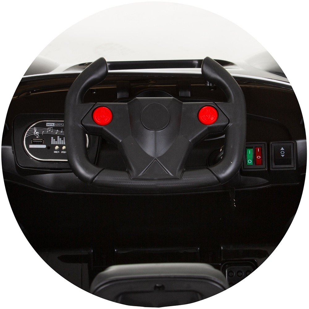 - Masinuta poate fi utilizata prin 2 moduri de control: de la distanta, in cazul in care parintele poate controla masinuta cu ajutorul telecomenzii cu 4 functii (inainte, inapoi, stanga, dreapta) sau manual, cand copilul conduce singur cu ajutorul pedalei de acceleratie si al volanului