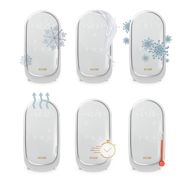 Nu știi cum să pregătești laptele matern în siguranță pentru consum? Având în vedere bogăția de nutrienți din laptele matern, am echipat Neno Lindo cu funcția specială MILK, care încălzește laptele la o temperatură optimă de 35–40°C.