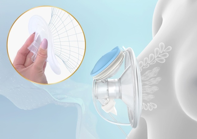 Pâlniile anatomice ale pompei Neno Velo se potrivesc natural cu forma unică a fiecărui sân. Fiecare pâlnie asigură o etanșare bună, fără a presa prea tare zona aureolară, ceea ce contribuie la creșterea cantității de lapte extras.