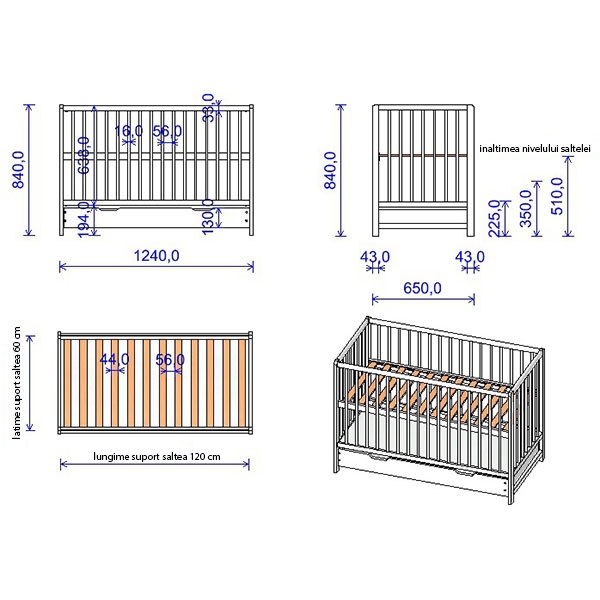 Dimensiune saltea necesara: 120x60 cm.