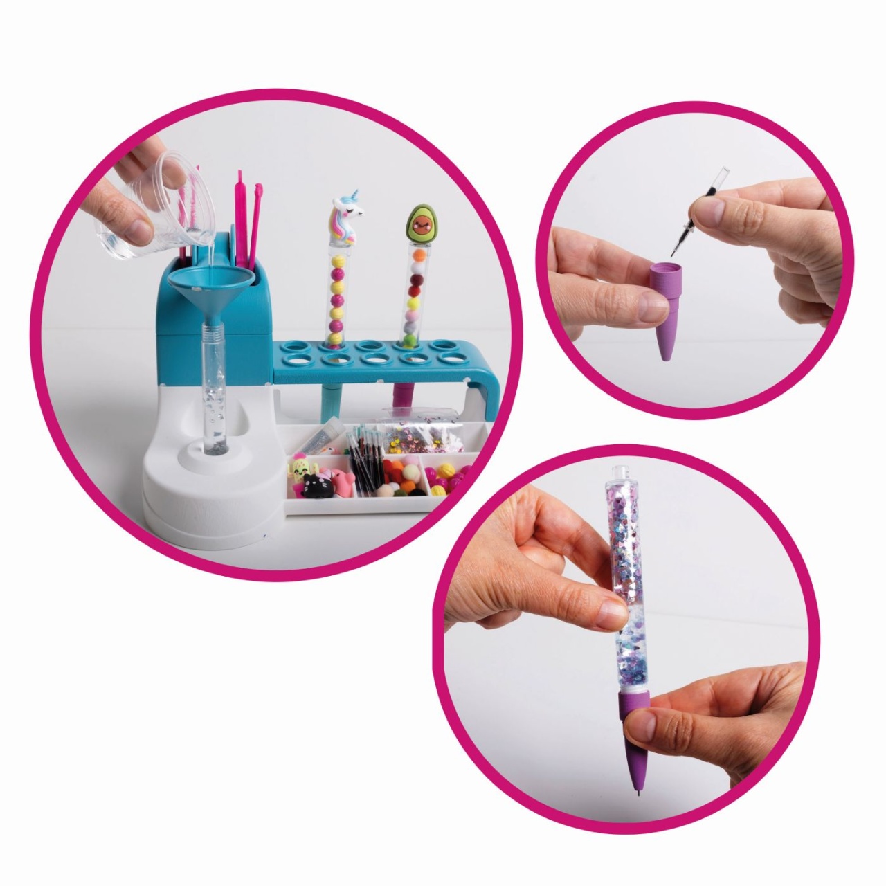 Acest set creativ ofera o modalitate distractiva de a-ti petrece timpul creand o multime de pixuri colorate si decorate. Acesta permite copiilor sa isi creeze si sa isi personalizeze propriile stilouri cu o varietate de accesorii si decoratiuni. O statie de lucru la indemana si un set bogat de instrumente sprijina activitatile de joaca, avand rezultate uimitoare. Acest studio de creatie nu numai ca incurajeaza creativitatea, ci si dezvolta abilitatile practice si cognitive ale copiilor, permitandu-le sa se bucure de procesul creativ si sa creeze propriile lor opere de arta functionale. Setul contine baza din plastic si accesorii pentru depozitarea elementelor si a creioanelor pe care le creati, palnie si instrumente, protectii antiderapante, 10x recipiente, dopuri, capace, 12x cartuse de cerneala in diferite culori, sclipici, margele,10 figurine din cauciuc, manual de intructiuni.*Durata de livrare a produselor de 1-2 zile lucratoare poate fi oferita in perioadele cu volum scazut de comenzi si in conditii de disponibilitate a produselor. Termenul se poate prelungi pana la 30 de zile conform prevederilor legale de livrare a comenzilor plasate online.