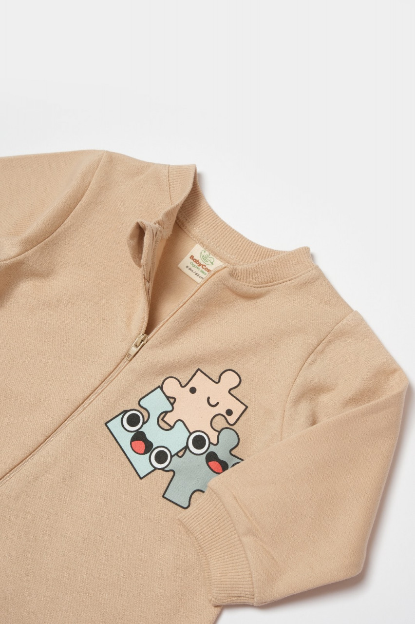 Salopeta cu fermoar, Two thread, BabyCosy, 100% bumbac organic, Stone