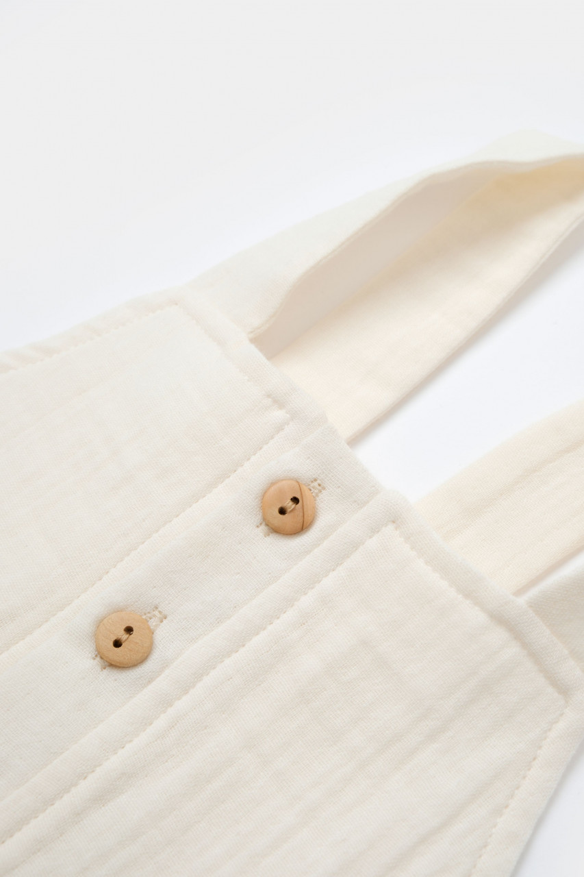 Salopeta de vara cu buzunare din muselina, BabyCosy, 100% bumbac organic, ecru