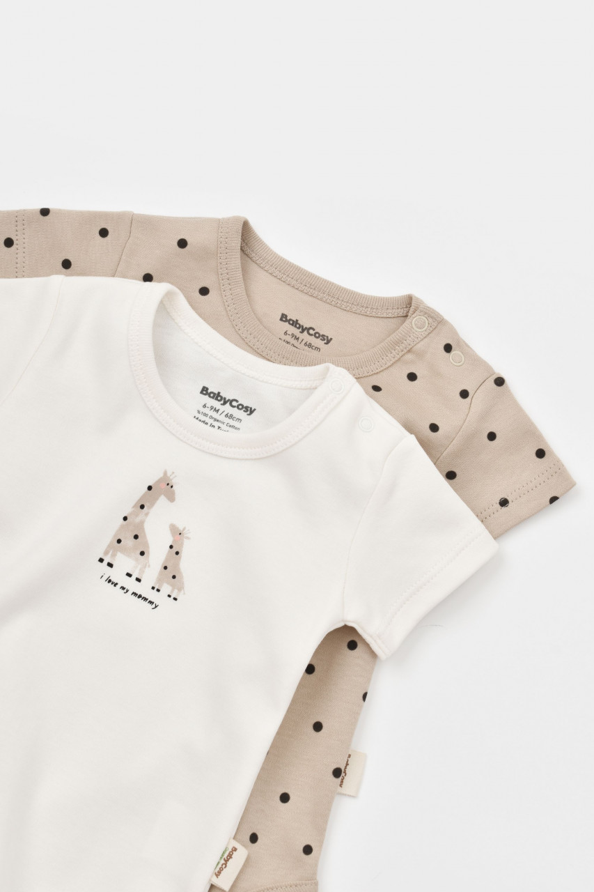 Set 2 body-uri bebe unisex Girafa, BabyCosy, 100% bumbac organic
