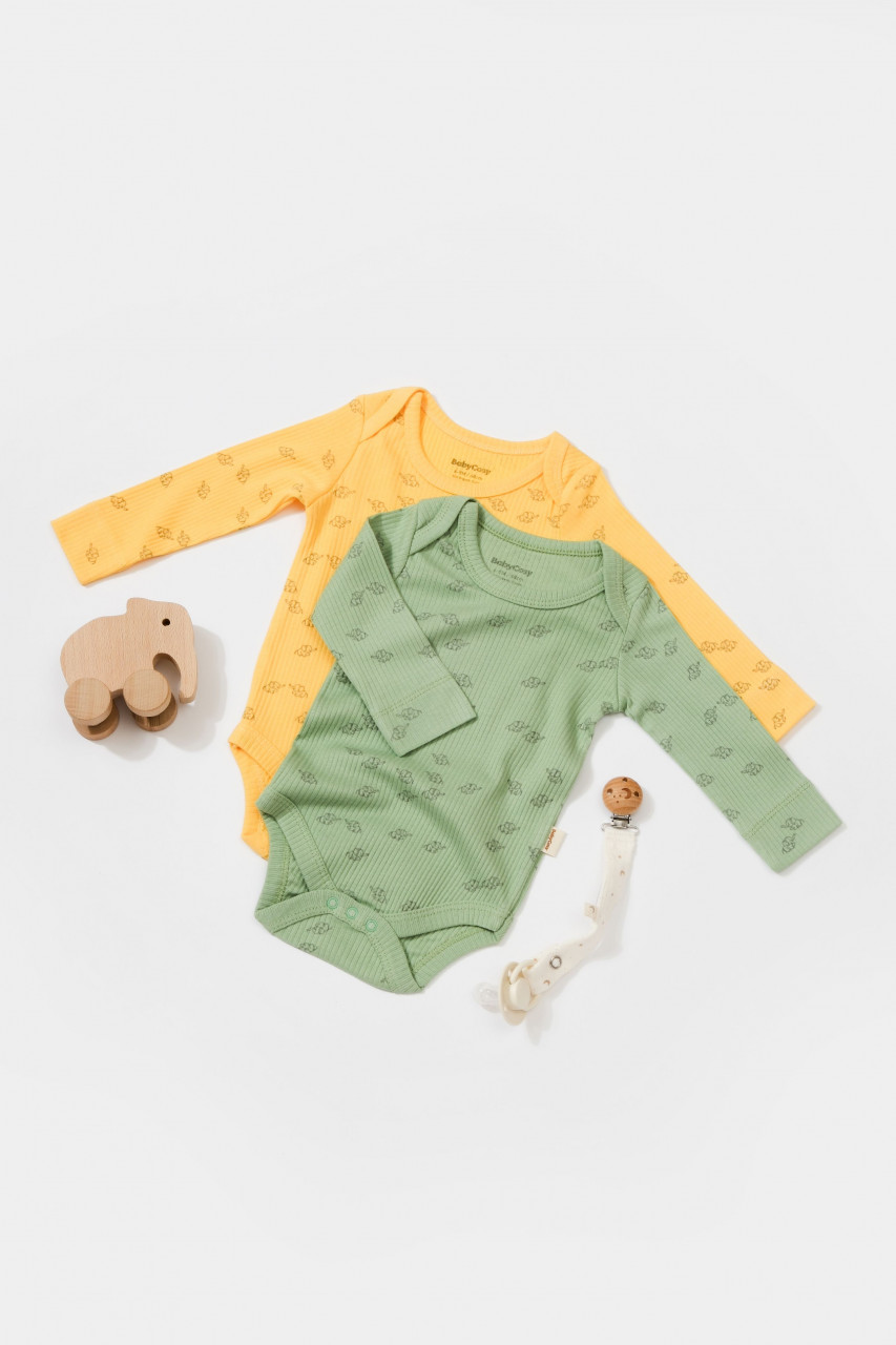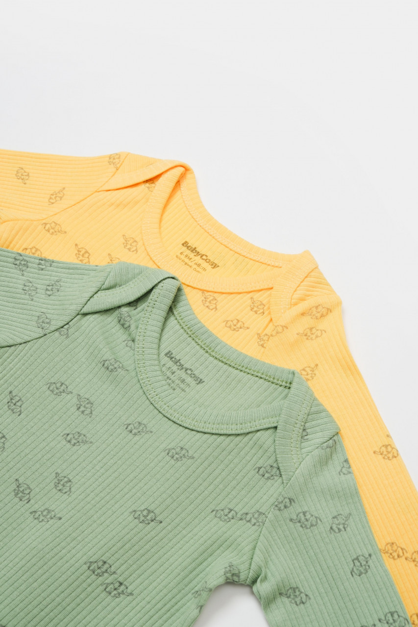 Set 2 body-uri cu maneca lunga Printed, BabyCosy, 50% modal+50% bumbac, Lamaie/Verde