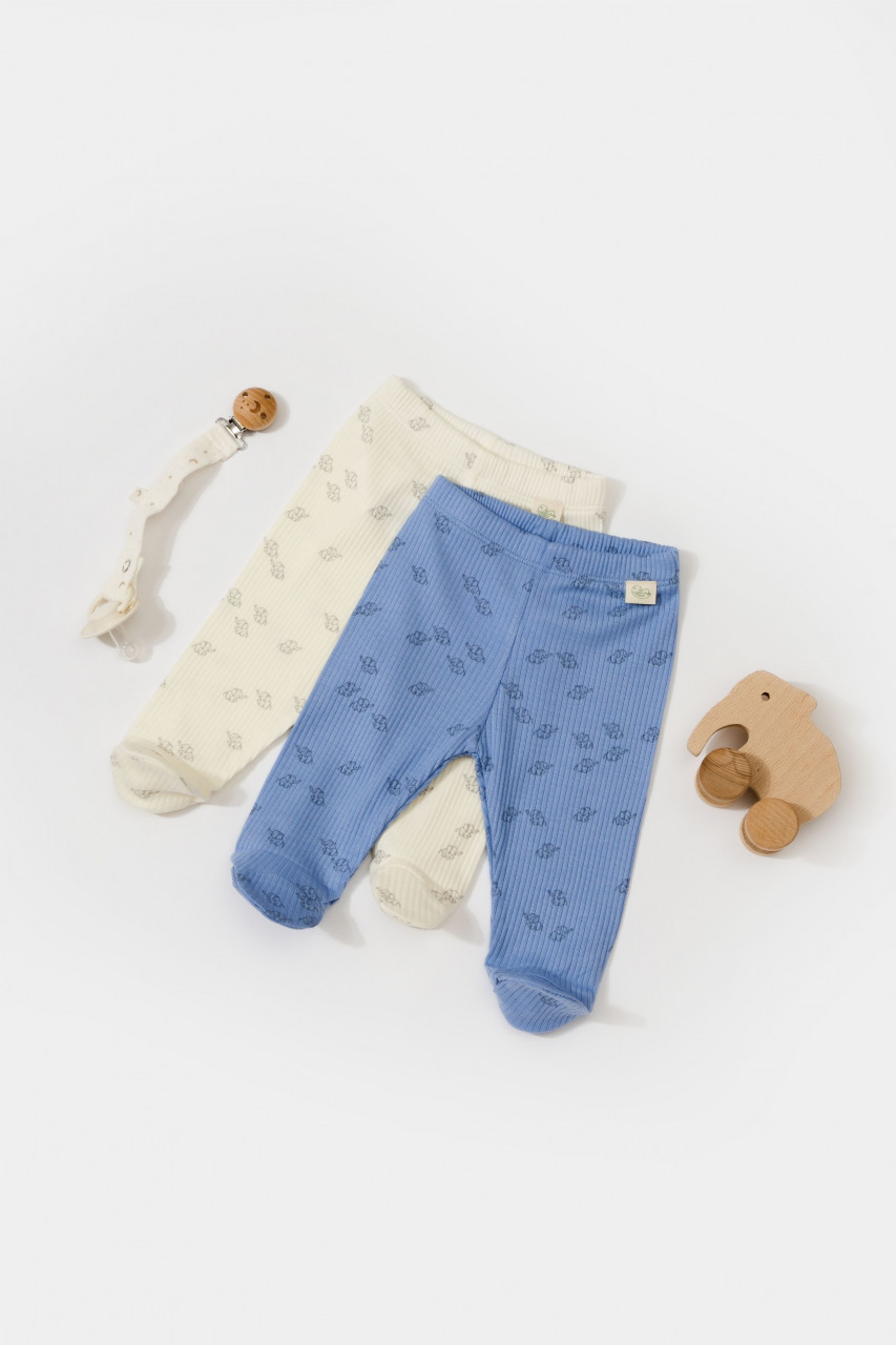 Set 2 pantalonasi cu botosei Printed, BabyCosy, 50% modal+50% bumbac, Ecru/Lavanda