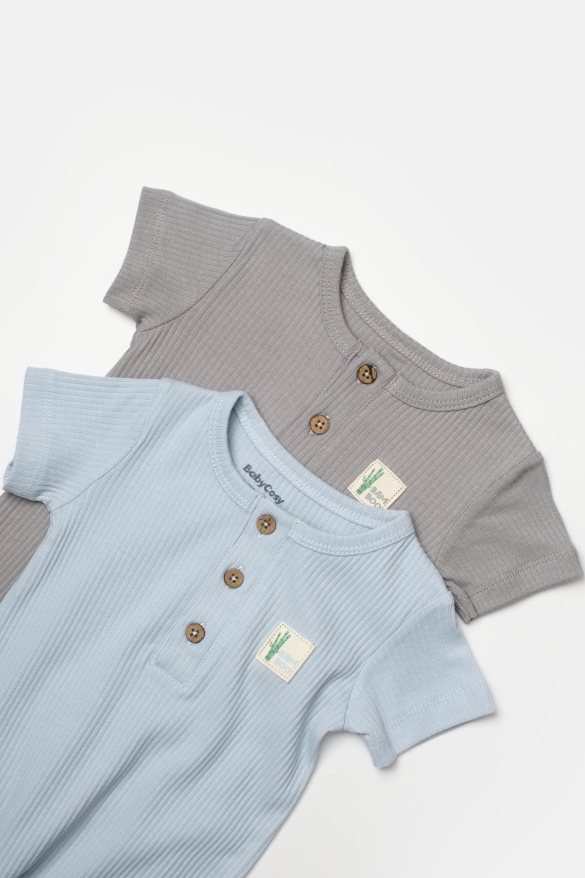 Set 2 salopete scurte Bamboo, blue, BabyCosy, 50%bumbac+50% bambus