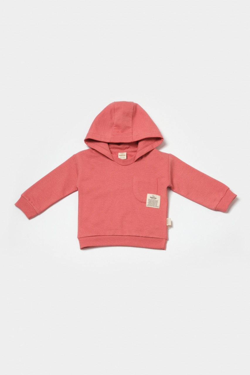 2. Hanoracul cu maneci lungi si gluga, din 100% bumbac organic,are un buzunar decotativ la piept.