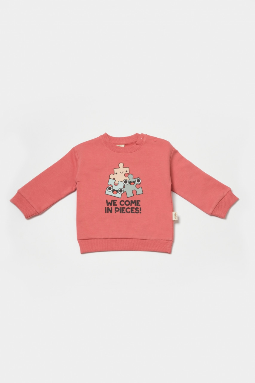 2. Hanoracul cu maneci lungi, din 100% bumbac organic, are un imprimeu haios pe piept. Aceasta se inchide cu capse