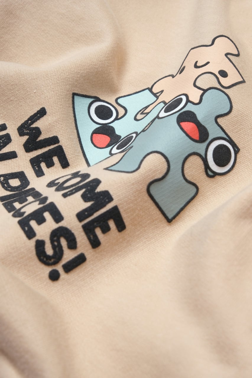2. Hanoracul cu maneci lungi, din 100% bumbac organic, are un imprimeu haios pe piept. Aceasta se inchide cu capse