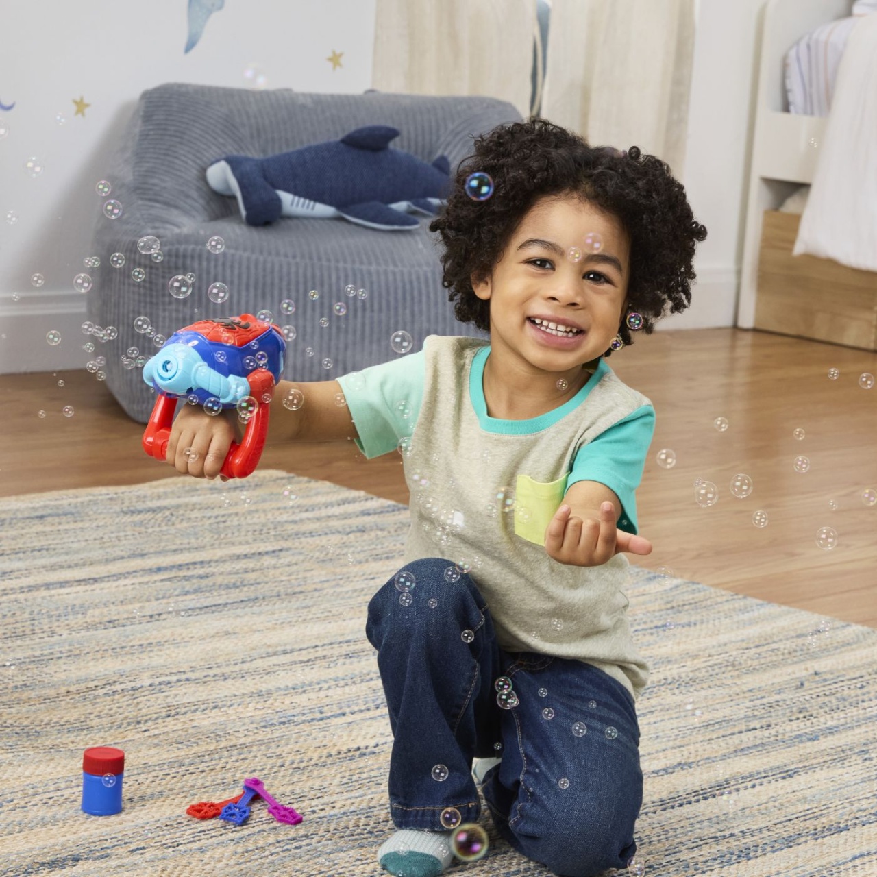 Imagineaza-ti ca te legeni pentru a salva situatia cu acest aparat de facut bule Marvel Spidey si uimitorii sai prieteni! Copiii cu varsta de 3 ani si peste se pot costuma in Spidey si se pot preface ca salveaza situatia cu suflanta electronica de bule. Umpleti jucaria pentru facut bule cu solutia inclusa, apoi apasa manerul pentru a apasa butonul si a imprastia un jet de bule! Include, de asemenea, trei baghete de bule stivuibile, cu design si decor inspirate de serialul Disney Jr. Vine si cu 1 sticla de solutie de bule si 1 palnie pentru reincarcare rapida. Cauta mai multe jucarii Marvel Super Hero pentru baieti si fete de colectionat, de oferit cadou, inclusiv jucarii cu apa pentru copii, jucarii cu bule, vehicule de jucarie, figurine si seturi de joaca! Jucariile Spidey sunt cadouri Marvel cool pentru copiii prescolari!*Durata de livrare a produselor de 1-2 zile lucratoare poate fi oferita in perioadele cu volum scazut de comenzi si in conditii de disponibilitate a produselor. Termenul se poate prelungi pana la 30 de zile conform prevederilor legale de livrare a comenzilor plasate online.